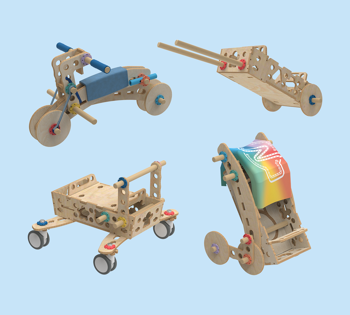 The original Nüdel Pod at the best price ever! Beautiful natural wood grain meets soft blue fabric and silicone parts. It's the classic design you love, now refined for deeper play with a timeless look.